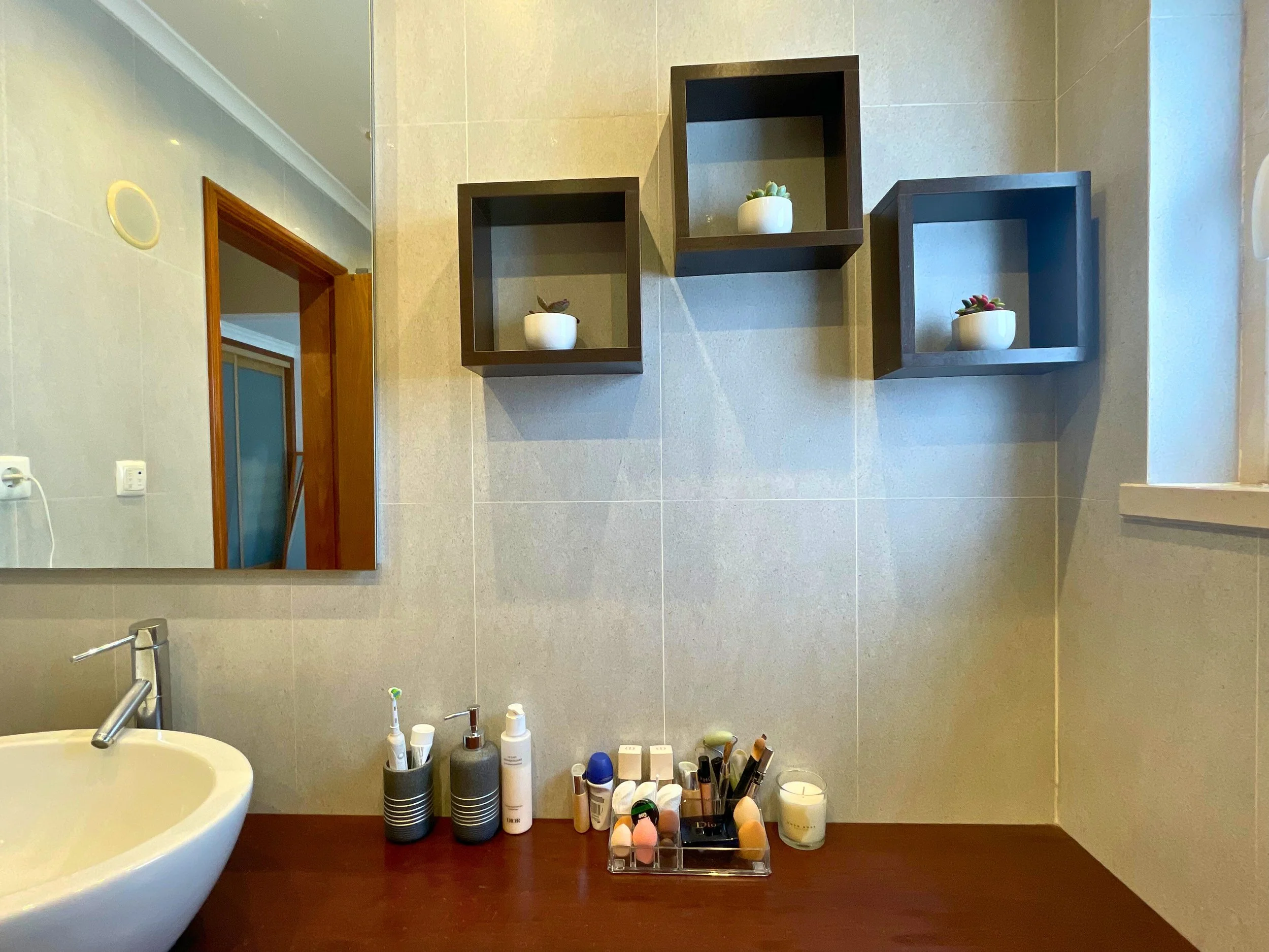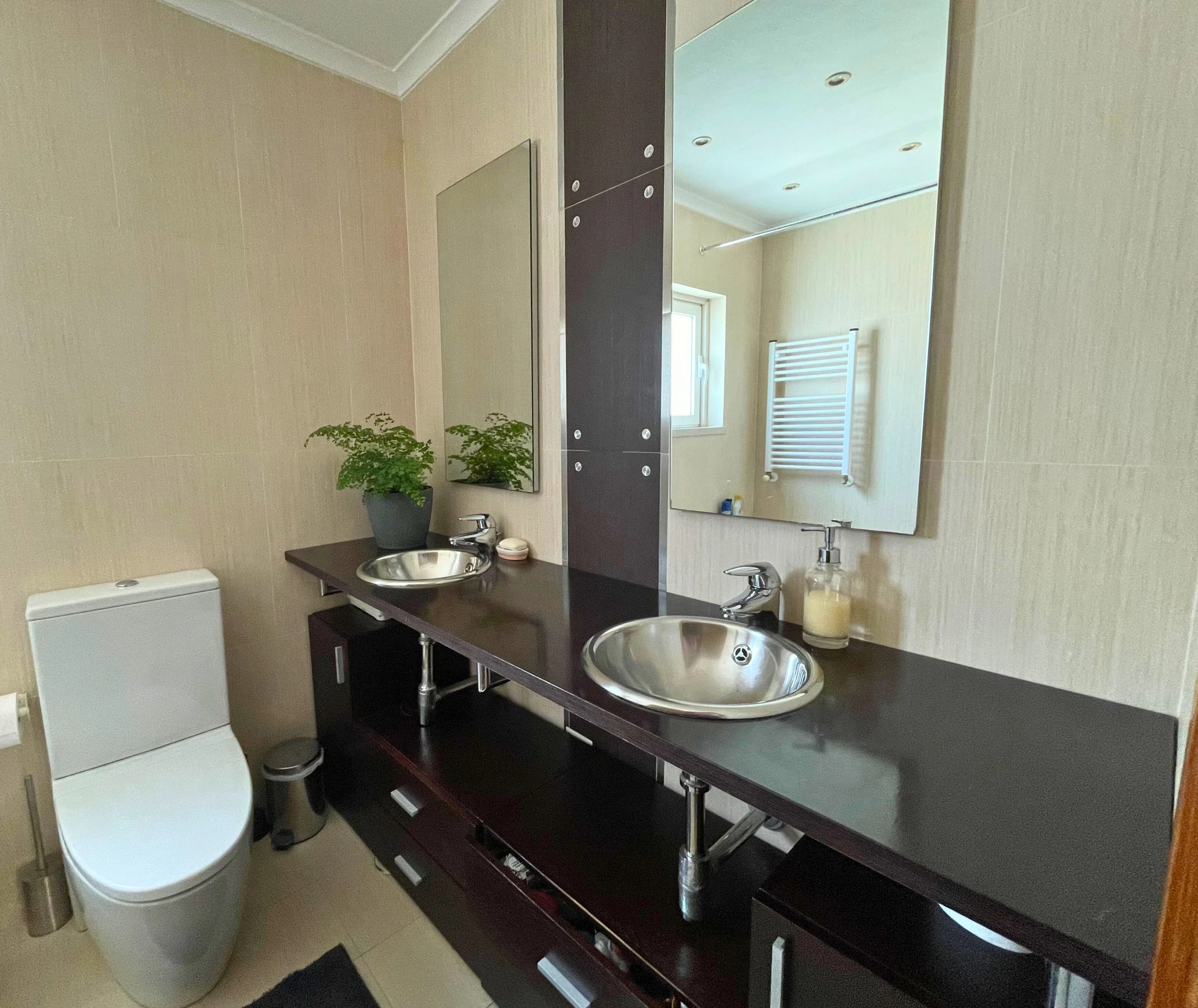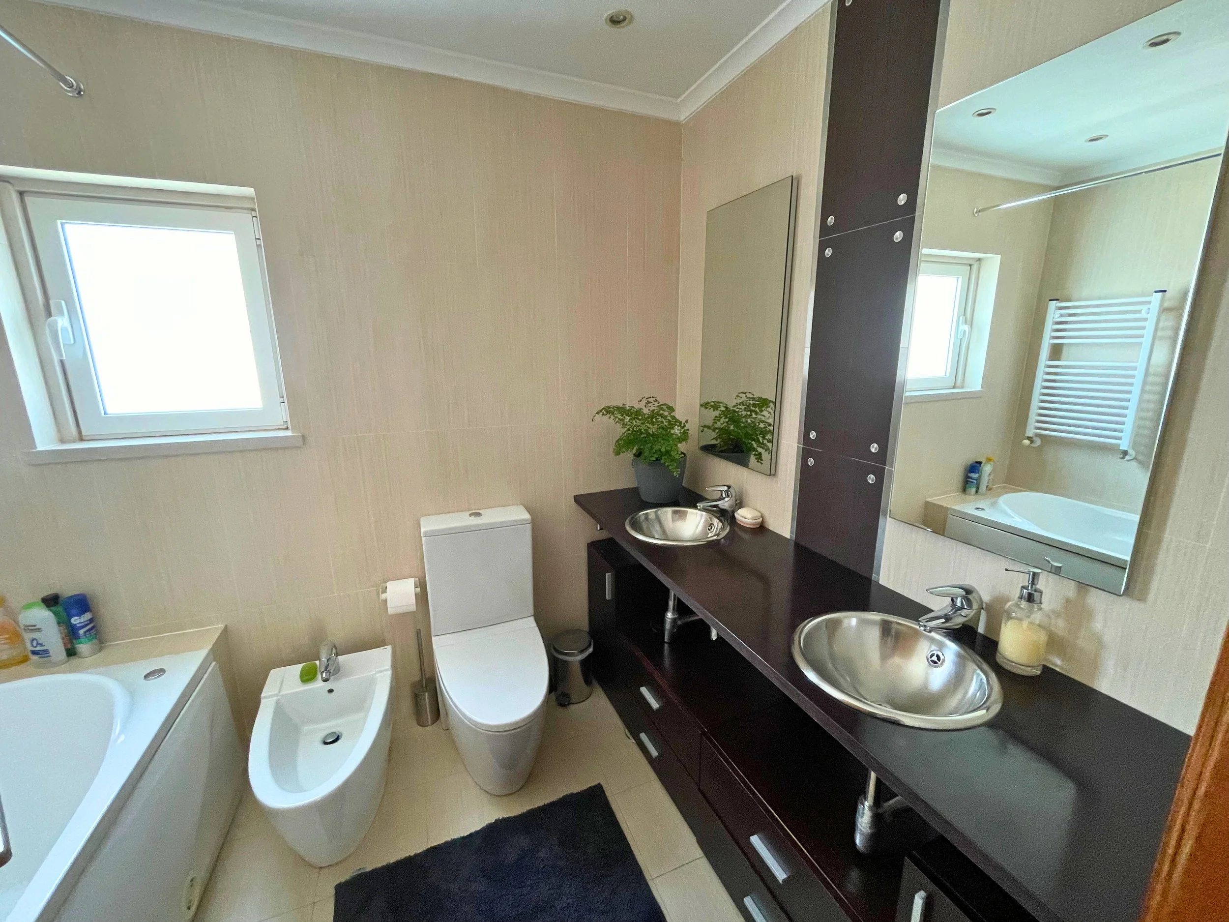 This generously sized bathroom is equipped with a jet tub, double sinks, and a bidet, offering both functionality and comfort. Thoughtfully designed with ample space, it’s ideal for busy mornings or unwinding at the end of the day.